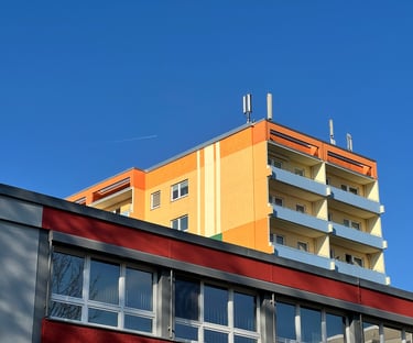 Mit dem Auto oder Fahrrad ist die Zufahrt über die Augustusburgerstraße. Im Hof sind sowohl Parkplätze als auch Fahrradständer.